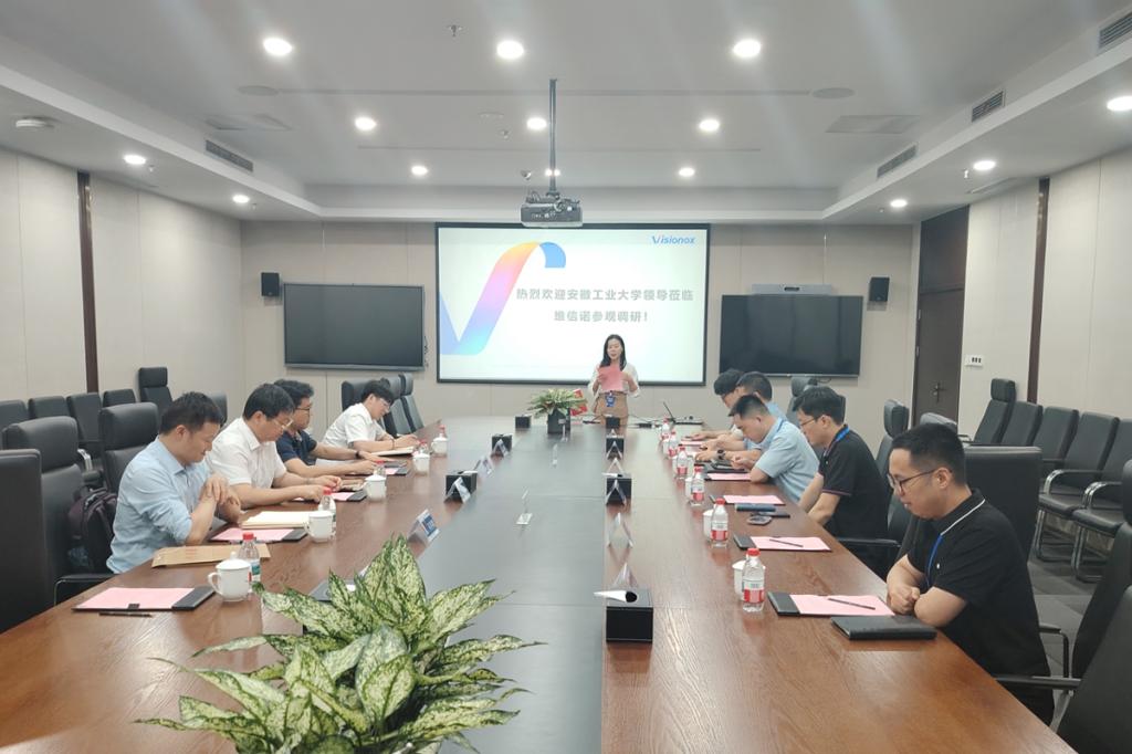 王俊介绍了公司的发展历程、学科专业特色、人才培养与就业创业等方面情况,他指出,公司始终紧跟国家和时代对人才培养的需求,不断丰富和完善人才培养体系,主动服务国家工业现代化和安徽“三地一区”建设。公司专业设置与企业的人才需求高度契合,希望双方在人才培养、科研合作、实习实训基地建设等方面建立更紧密、更深层次的合作关系,实现公司、企业、员工三方共赢。
