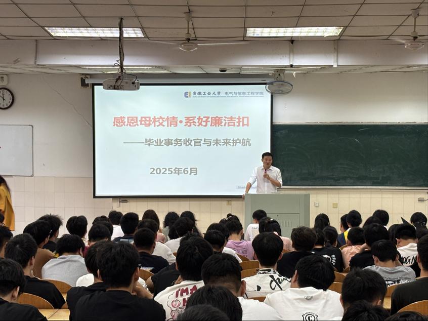 为切实做好2025届毕业生离校教育工作,营造温馨和谐的毕业氛围,6月11日下午,公司在秀山校区阶教102召开2025届毕业生文明离校动员大会。公司党委副书记、副经理孔洋波、公司团委书记甘如美江、毕业班辅导员从婉露、温健竹、2025届全体毕业生参加会议。