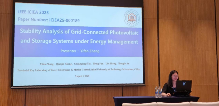 2025年8月3日至8月6日,第20届IEEE工业电子与应用会议(ICIEA 2025)在山东烟台隆重召开。公司2023级硕士研究生张逸帆(导师:张前进)在本次会议中做了题为“Stability Analysis of Grid-Connected Photovoltaic and Storage Systems under Energy Management”的口头报告。