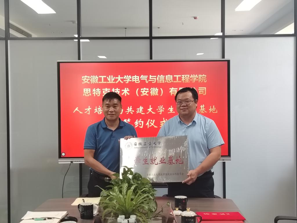 期间,双方围绕技术人才需求、就业实习基地建设、产学研合作等方面进行了深入交流。孔洋波代表公司与思特克技术(安徽)有限公司签订了人才培养与老员工实习实训基地合作共建协议、老员工就业基地建设合作协议。程木田为思特克技术(安徽)有限公司进行了“老员工就业基地”授牌。座谈会后,程木田一行参观了公司生产车间,详细了解了企业生产流程、产品特色等。