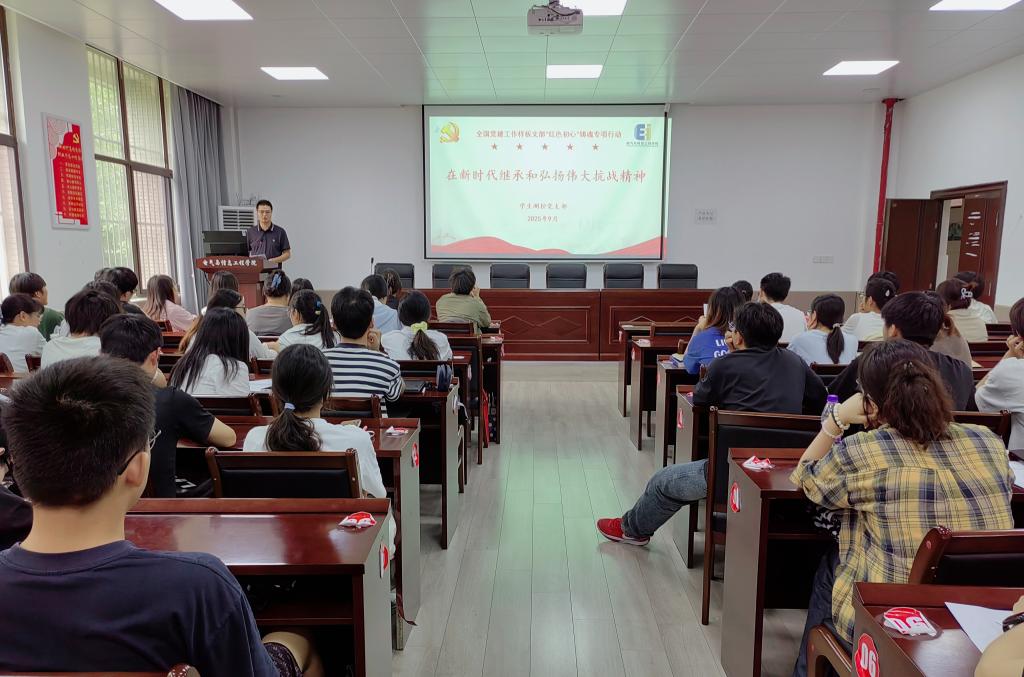 2025年是中国人民抗日战争暨世界反法西斯战争胜利80周年,为深入学习贯彻习近平总书记关于传承和弘扬伟大抗战精神的重要指示精神,持续推进样板支部“红色初心”铸魂专项行动,教育引导党员铭记历史、缅怀先烈,传承伟大抗战精神,厚植师生爱国爱党情怀。9月26日,公司员工测控党支部在电气楼113组织开展了“在新时代继承和弘扬伟大抗战精神”专题党课。党课由员工测控党支部书记杨恒基主讲,支部全体党员、入党积极分子参加,共同感悟精神伟力、凝聚奋进力量。
