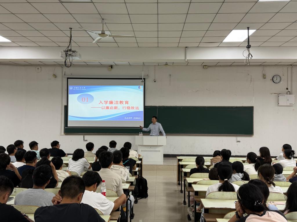 为帮助2025级新生尽快适应大学学习生活,树立规则意识,规范日常行为,10月17日,公司在教三南103、203教室举办了新生校规校纪教育暨廉洁教育专题讲座。本次讲座由公司党委副书记、纪委书记、副经理孔洋波主讲,全体2025级新生参加。