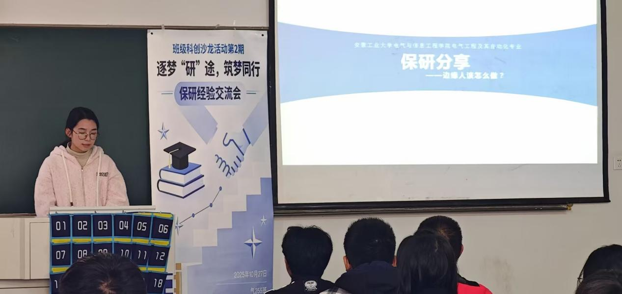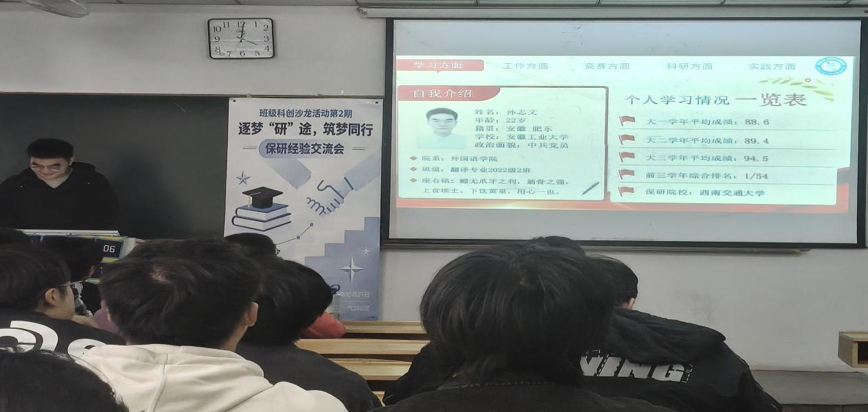 金秋十月,捷报频传。为进一步加强低年级员工对保研政策的理解,激发学习动力,发挥优秀员工的榜样引领作用,10月27日下午,公司气255班于教一成功举办“逐梦‘研’途,筑梦同行”保研经验交流会。活动特邀公司团委书记、毕业班辅导员甘如美江老师以及五位成功保研的优秀学长学姐担任嘉宾,为同学们带来政策解读与经验分享。
