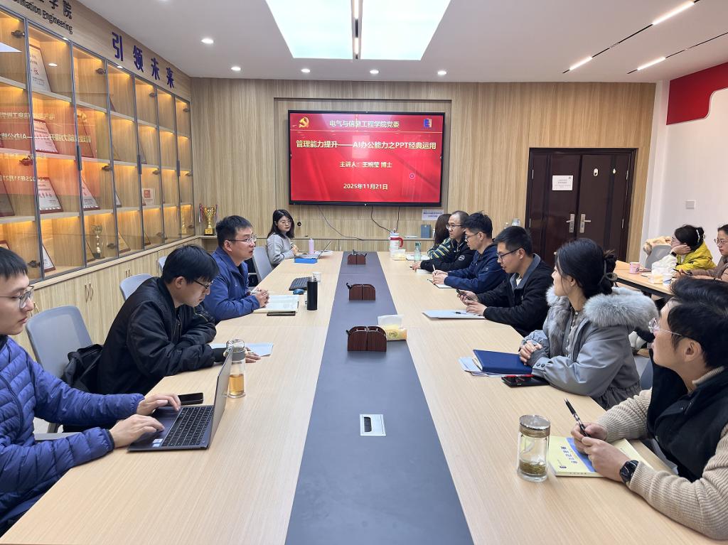 在专项学习中,孔洋波带领学员进行了《新时代高等公司教师职业行为规范》专题学习,进一步明确广大教师的神圣职责和师德师风的具体要求;组织集体观看警示教育片《零容忍》,进一步提升全体科级干部廉洁从教的思想认识。公司王婉莹博士为学员开展了“AI办公能力PPT制作技术”的专题培训。