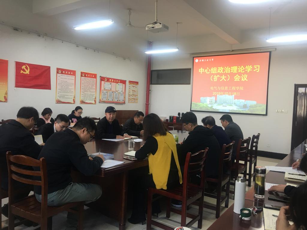 10月18日上午,电气公司党委理论学习中心组在电气楼304会议室召开集中学习(扩大)会。公司领导班子成员、党委委员、党支部书记、系室中心主任、科级干部、工会主席、全体辅导员等参加会议。
