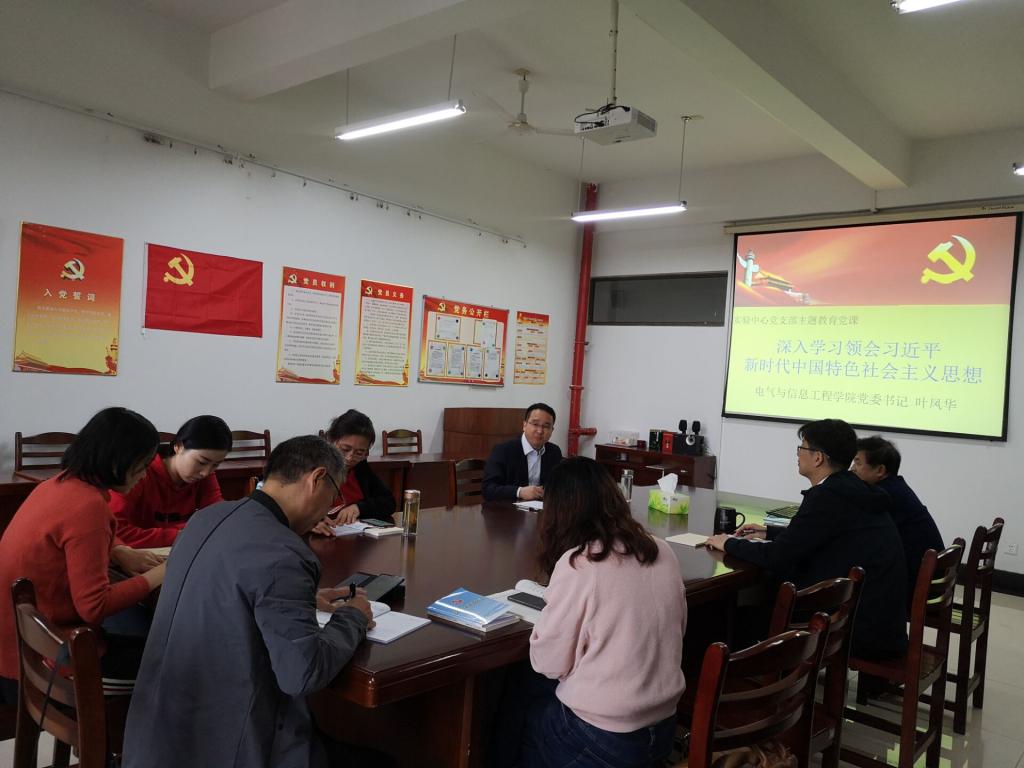 10月23日上午,电气公司实验中心全体党员参加“不忘初心、牢记使命”主题教育学习会,公司党委书记叶凤华以“深入学习习近平新时代中国特色社会主义思想,做新时代合格的大学教师”为题,为大家上党课。