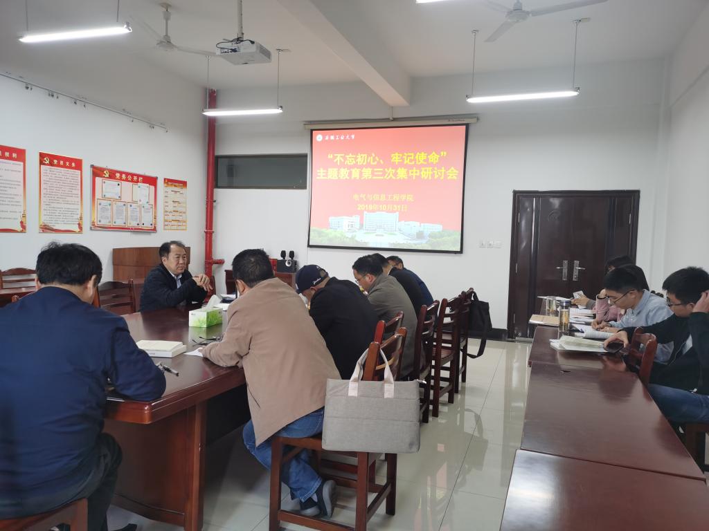 10月31日下午,电气公司党委组织召开“不忘初心、牢记使命”主题教育第三次专题研讨会,院领导班子成员围绕“锤炼党性修养、立足岗位担当作为”主题进行了集中研讨。院党政领导、党委委员、团委书记和科级干部等参加了会议,会议由公司党委书记叶凤华主持。公司党委“不忘初心、牢记使命”主题教育第四督导组到会指导。