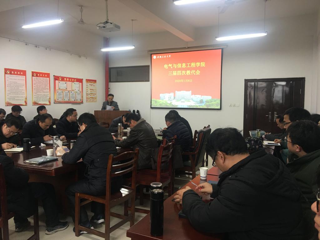 1月8日下午,太阳集团tyc539三届四次教代会在秀山校区电气楼304召开。公司33名正式代表与7名列席代表参加了会议,会议由公司党委书记叶凤华主持。