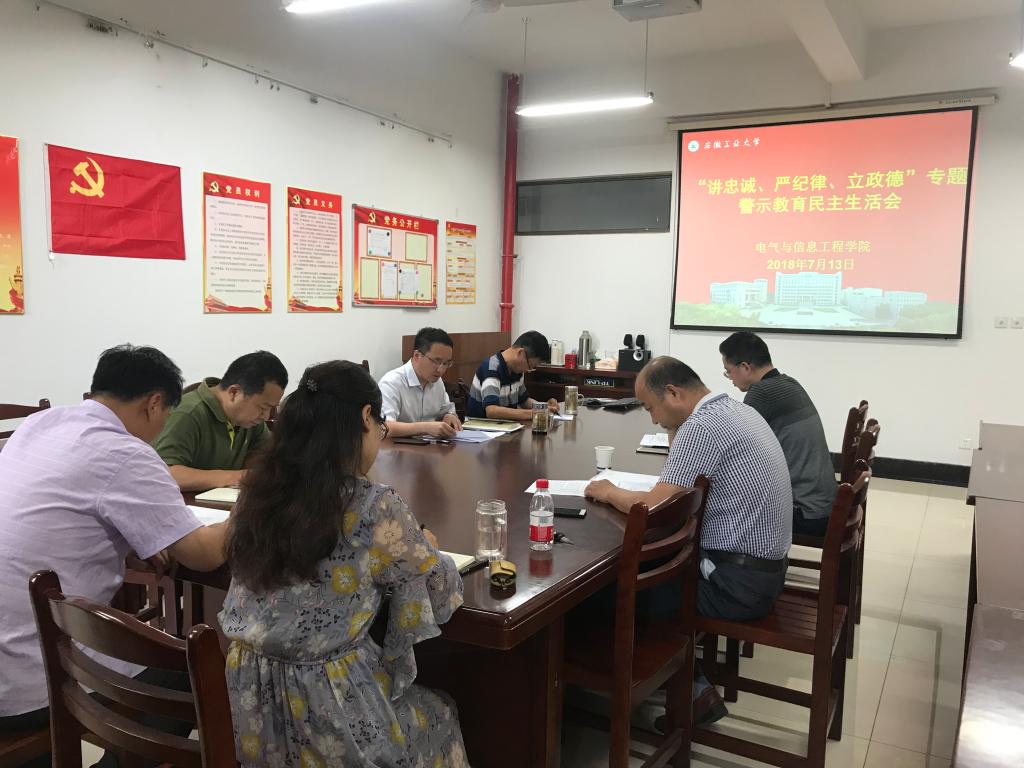 7月13日下午,电气公司党委在电气楼304会议室召开“讲忠诚、严纪律、立政德”专题警示教育民主生活会,公司领导班子成员、党委委员参加了会议,会议由公司党委书记叶凤华主持。