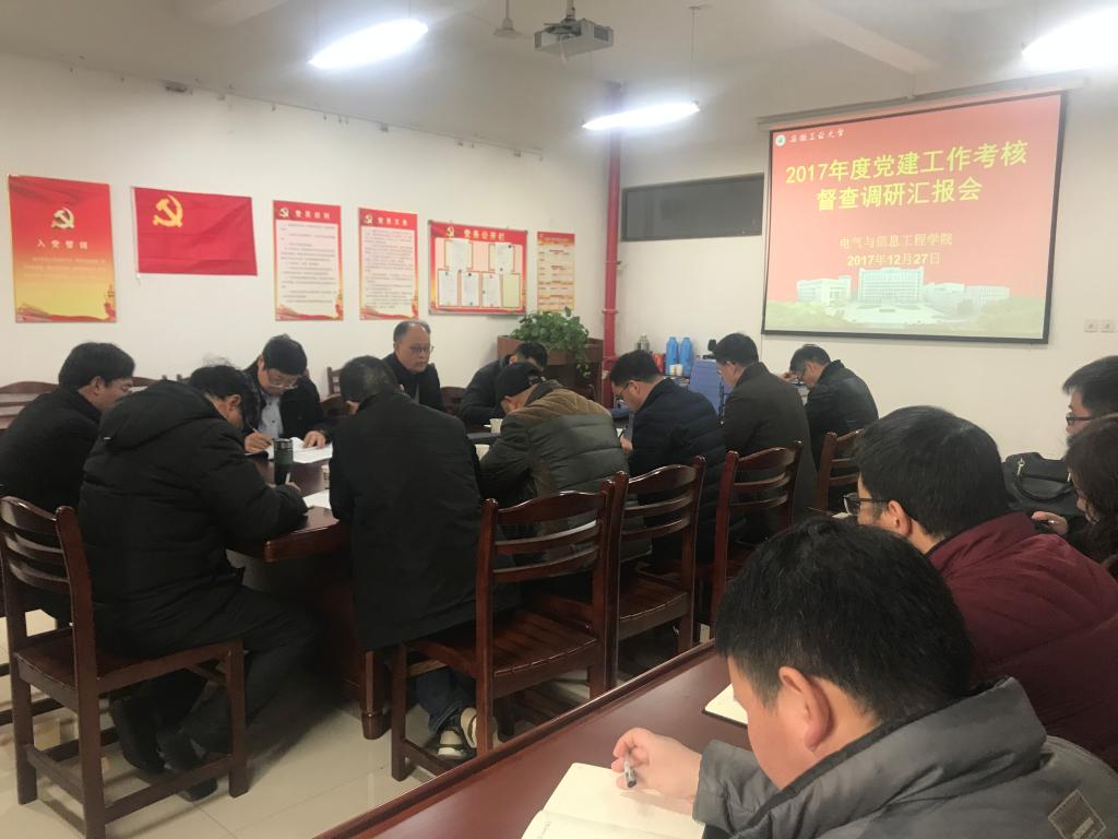 12月27日下午,公司党委常委、组织部部长刘明,校纪委副书记、纪委办公室主任、监察处处长王俊,校办机要信息科科长戴少刚一行,到电气与信息工程公司督查调研2017年度基层党建考核工作。学院党政领导、党支部书记、党务秘书参加了督查调研会。
