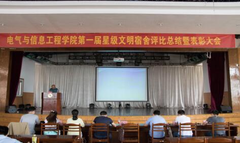 6月14日中午,电气公司在旧老员工活动中心组织召开了第一届星级宿舍评比总结暨表彰大会。党委副书记副经理郭宏、公司团委书记孔洋波以及公司各年级辅导员出席了本次会议。