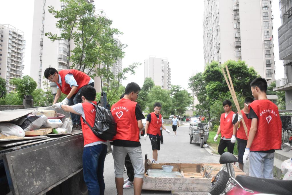 再多的杂草也消灭不了队员们志愿服务的热情,经过短暂的休息后,实践队又来到了小区楼下,帮助居民清理楼道中的杂物并放到垃圾车中。当有大爷问到在做什么的时候,周书记亲切地回答道:“这是安工大的员工来帮助我们清理出楼道中堆积的杂物,你们自己拿不动,不方便拿,他们来帮忙,让楼道更整洁,这样你们住的不就更舒服了。”大爷笑着说:“好事,好事。”居民的满意,是对实践队队员们辛勤工作最大的肯定。