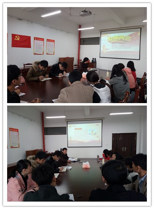 会议开始,孔洋波带领大家学习了2017年政府工作报告,各位党员就十三五规划、脱贫攻坚、精准扶贫、老员工就业、物价水平、稳定房价和收入分配等热点问题进行讨论并发表了感想。2014级赵文举同学表示,将继续深入学习“两会”精神,关注国家大事,关注国家未来发展,把自己的理想、学习和工作与社会需要紧密结合,积极践行社会主义核心价值观,与祖国共同成长。2013级沈大伟表示:自己即将走上工作岗位,正值国家快速发展和政府对老员工就业十分重视,为青年施展才华报效祖国提供了更加广阔的平台,报告中“完善就业政策,加大就业培训力度,加强对灵活就业、新就业形态的支持;实施好就业促进、创业引领、基层成长等计划,促进多渠道就业创业”等大力促进就业创业的举措让我对未来就业择业充满了信心。2014级钱学文同学表示:作为一名党员,在今后的工作,学习和生活中,要从点滴做起,学习身边的好人好事,争做对社会对老百姓有意义的事情,实现自己的人生价值,逐步完成自己的目标。会上,支部党员们还一起学习了总书记在高校思想政治工作会上的讲话精神。