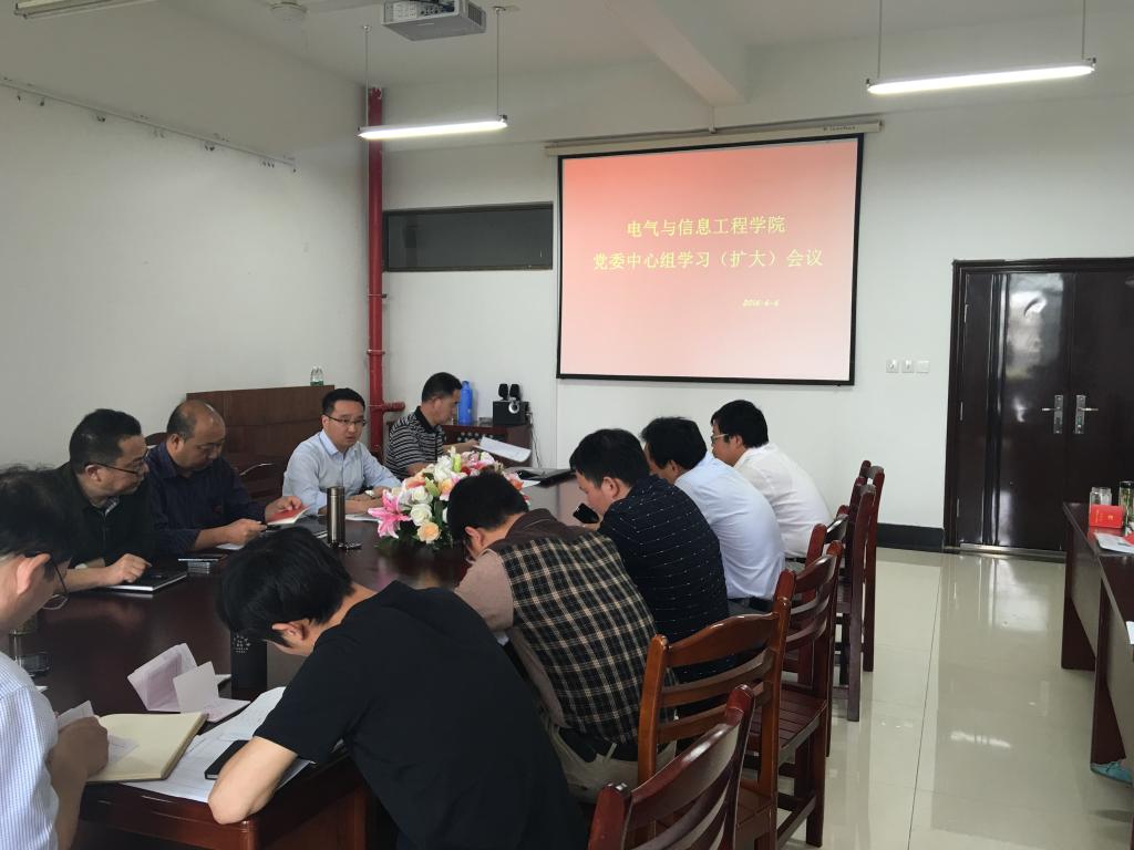 6月6日下午,太阳集团tyc539在电气楼304会议室召开党委中心组学习(扩大)会议,开展“两学一做”学习教育。全体院领导、系室中心主任、支部书记、全体科级干部及辅导员老师参加了学习会。