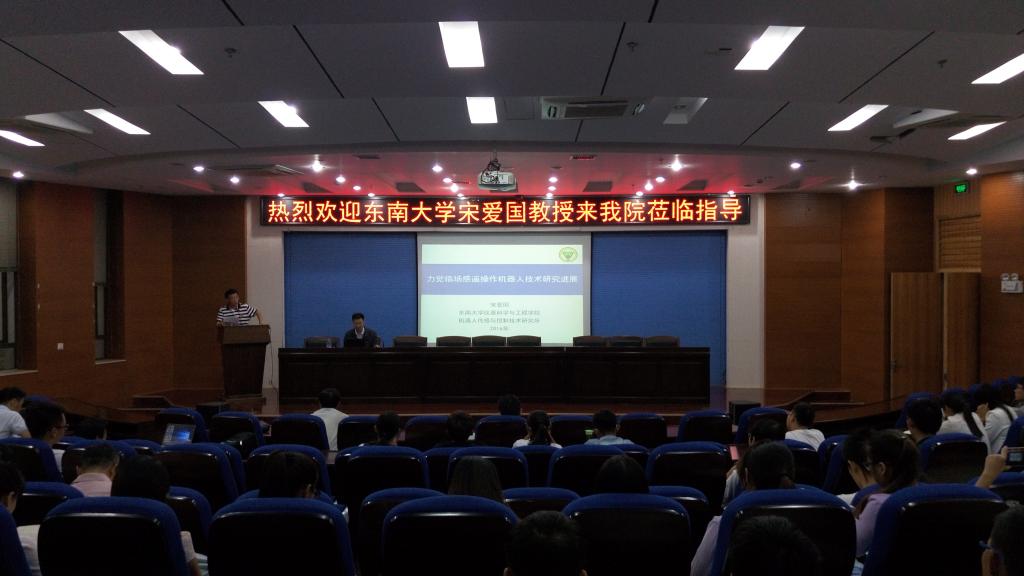 9月21日下午,应公司邀请,东南大学仪器科学与工程公司经理宋爱国教授来公司做《力觉临场感遥操作机器人技术研究进展》学术报告,太阳集团tyc539副经理章家岩教授主持,公司骨干教师,本科生及研究生参加了此次活动。