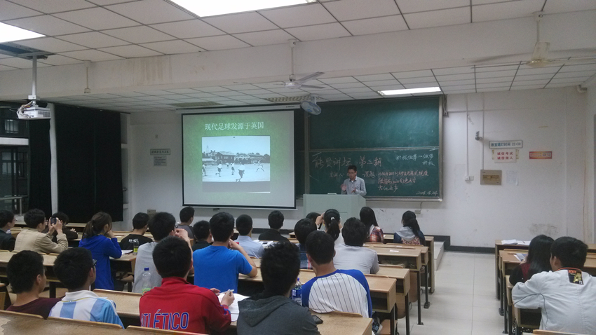接下来,气3班的马志强的“绿茵场上的幻色天空”更是让大家领略到了足球的独特魅力。在一页页图文并茂的精美PPT、一段段短小精悍的影片加上富有激情的演讲,他从汉代的蹴鞠讲到现代的足球,从比赛规则讲到国际重要赛事,从球迷说到“国足”,他希望国人给国足一点包容和时间。马志强的演讲让大家了解了足球,体会了一把“不疯狂,不球迷”,感受到了足球的魅力,同时更加激起了同学们对生活的热爱,赢得了全场热烈的掌声。