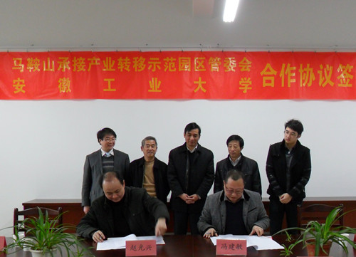 电气信息公司经理赵光兴和马鞍山承接产业转移示范园区管委会副主任冯建敏分别代表双方在合作协议上签字。