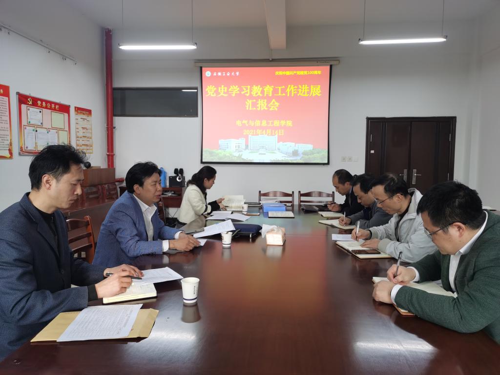 4月14日下午,公司党委党史学习教育第一巡回指导组组长赵保平,组员江文丽、许小虎一行到电气公司检查督导党史学习教育,公司党委书记丁忠利、经理王兵等班子成员参加会议。