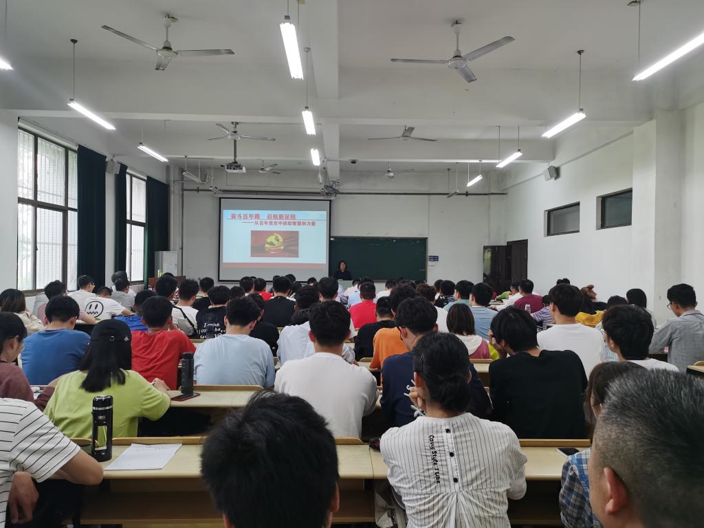 王桂兰老师以《奋斗百年路,启航新征程——从百年党史中汲取智慧和力量》为题,从学习党史的意义、党的光辉历程和历史性贡献及中国共产党的百年历史经验总结等方面回顾了中国共产党波澜壮阔的伟大百年历程。她以中国共产党成立以来的历次代表大会为主线,结合党史上的重大事件、重要人物,深入浅出的解读了新民主主义革命时期、社会主义革命和建设时期、改革开放和社会主义现代化建设时期、中国特色社会主义新时代这四个历史时期。