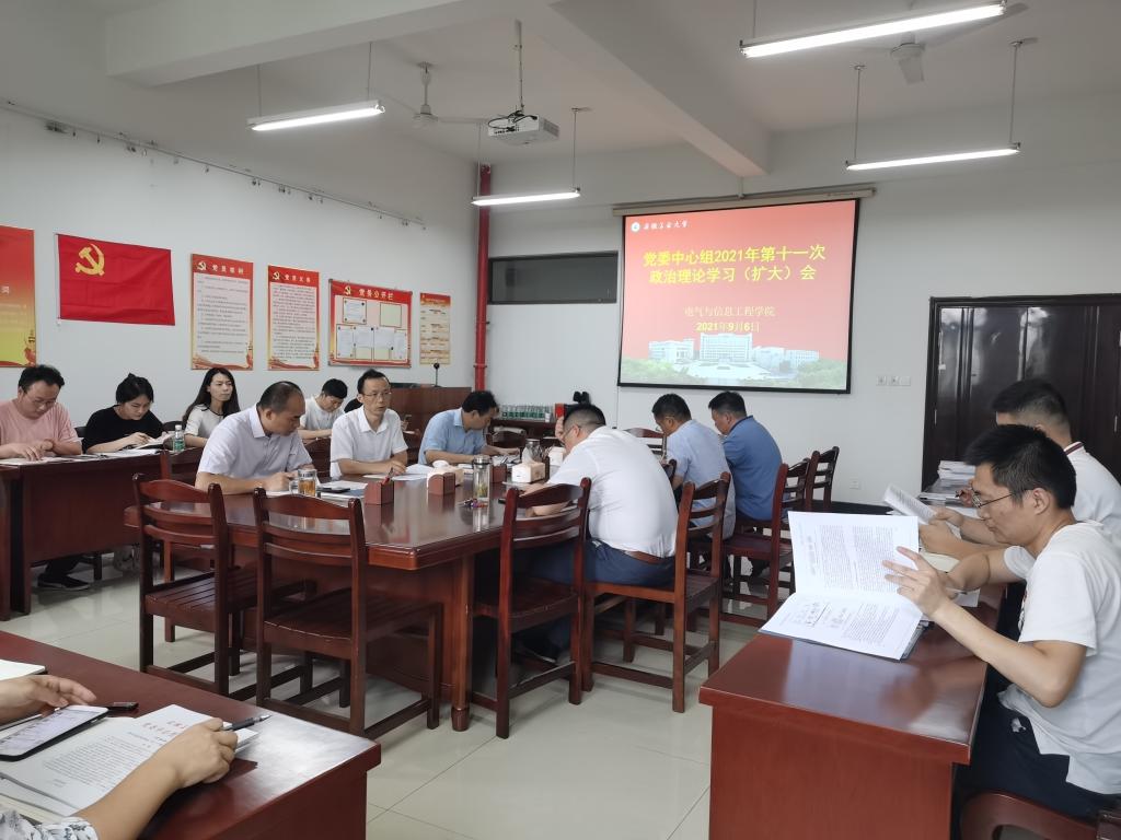 9月6日下午,电气公司党委在电气楼304会议室召开理论学习中心组2021年第十一次学习(扩大)会,公司党政领导、党委委员、党支部书记、系室中心主任、科级干部、工会主席和全体辅导员参加了会议,公司党委书记丁忠利主持会议。