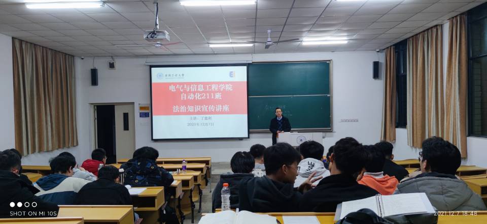 在我国第8个宪法日到来之际,为了深入学习宣传贯彻习近平法治思想,进一步增强广大同学法治意识。12月7日,公司党委书记丁忠利到联系班级自动化211班开展法治讲座,讲座由班长王志钧主持,班级全体同学参加了报告会。