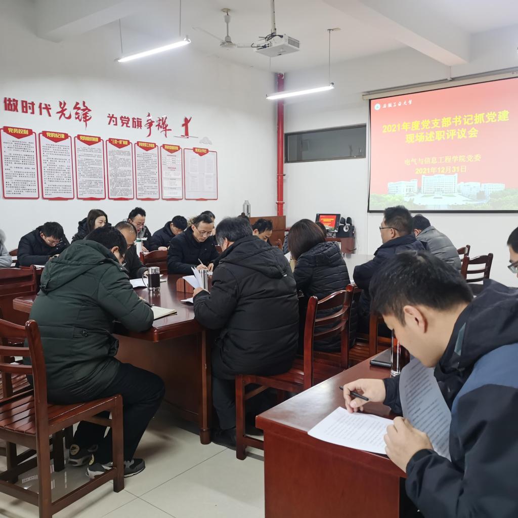 12月31日上午,电气公司党委在电气楼304会议室召开2021年度党支部书记抓党建现场述职评议会,公司党政领导、党委委员、纪委委员、党支部书记、系室(中心)主任、工会主席、科级干部、师生代表等参加会议。公司党委书记丁忠利主持会议。