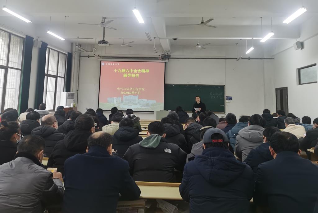 新学期伊始,为深入学习贯彻中国共产党第十九届中央委员会第六次全体会议精神。2月21日下午,电气公司邀请公司党委讲师团成员、马克思主义公司牛云芳博士来院作党的十九届六中全会精神专题宣讲报告,公司全体教职工、员工代表等参加报告会,公司党委书记丁忠利主持报告会。