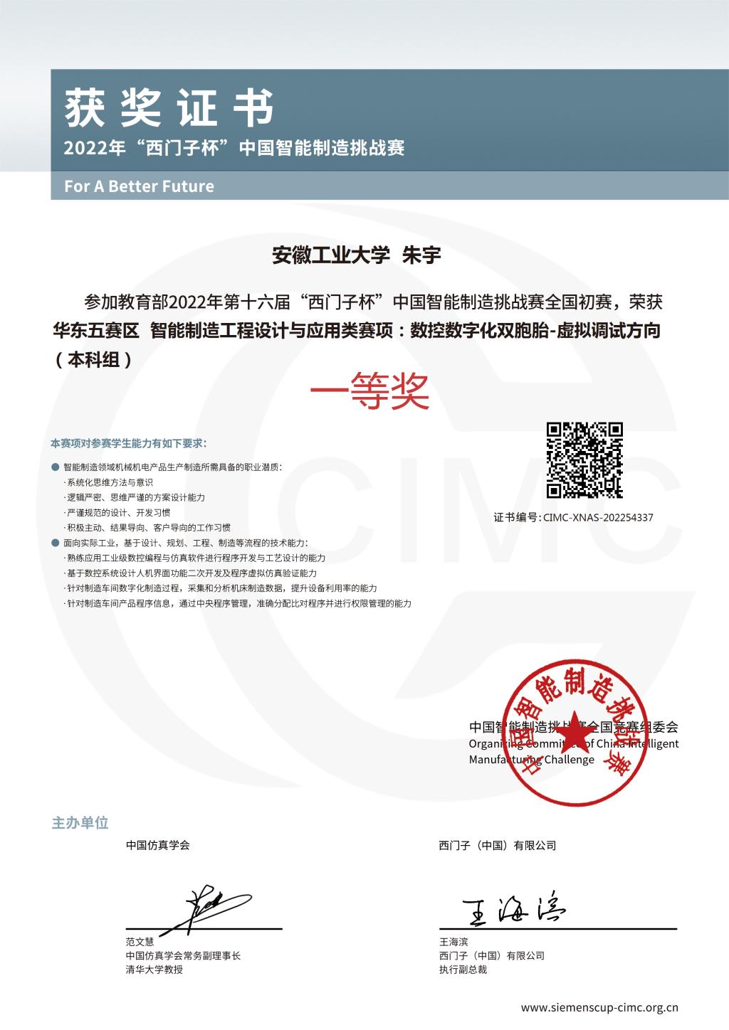 8月29日,教育部2022年第十六届CIMC“西门子杯”中国智能制造挑战赛(数控数字化双胞胎-虚拟调试方向)全国总决赛圆满落幕,由教师汪婧和朱争明指导的“加油向上队”(队员秦雨晴、张贺栋、朱宇)经过华东赛区选拔赛和全国总决赛,最终获得全国一等奖,这也是太阳集团tyc539在2022年里荣获的第4个国家级A类赛事一等奖。