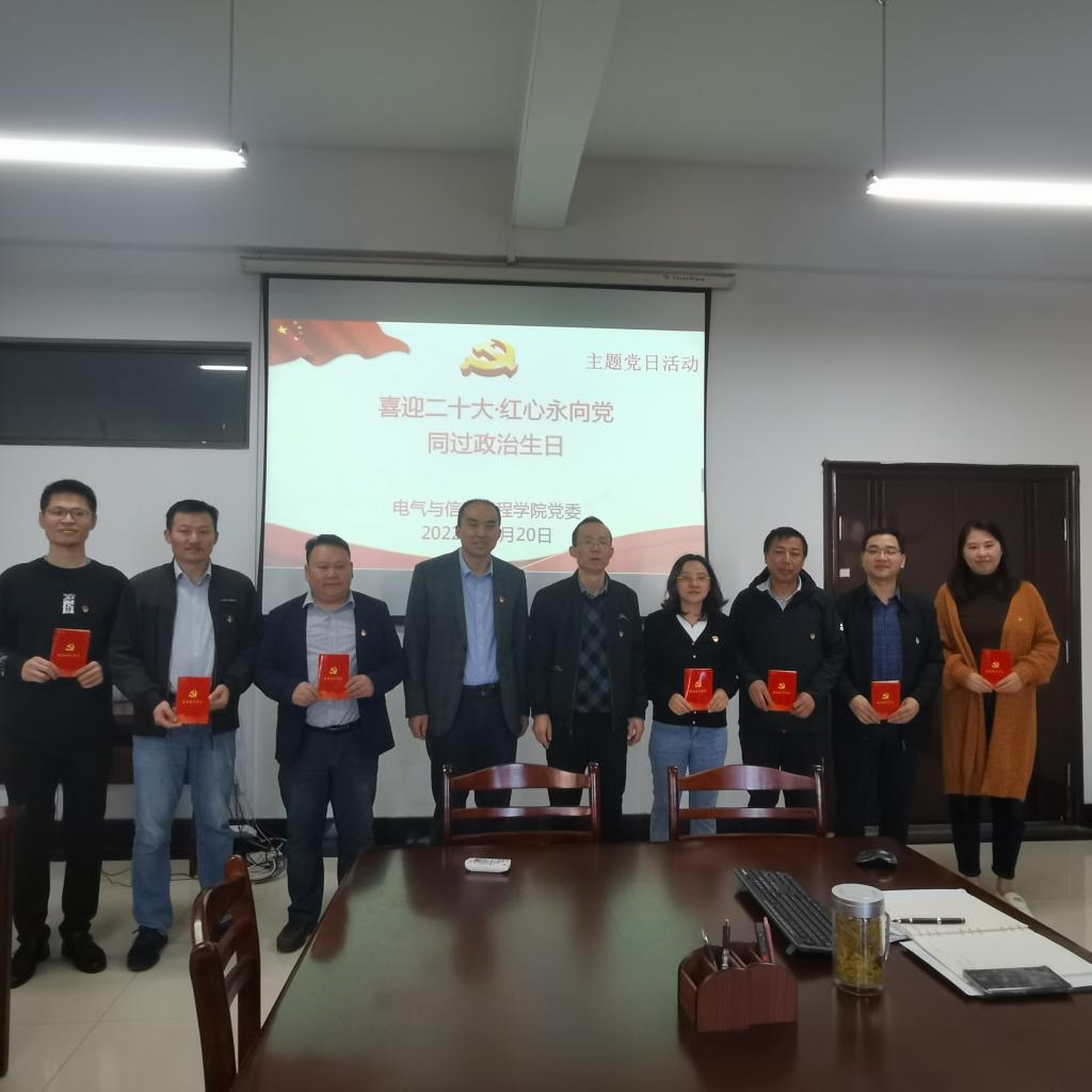 为激发公司教师党员的爱国主义情怀和干事创业奋勇争先的担当精神,10月20日上午,电气与信息工程公司党委为在10-12月份入党的教师党员举行“喜迎二十大·红心永向党·同过政治生日”主题党日活动。公司党委书记丁忠利、公司党委副书记、副经理夏玉钦、党支部书记代表、10-12月入党的教师党员参加活动。