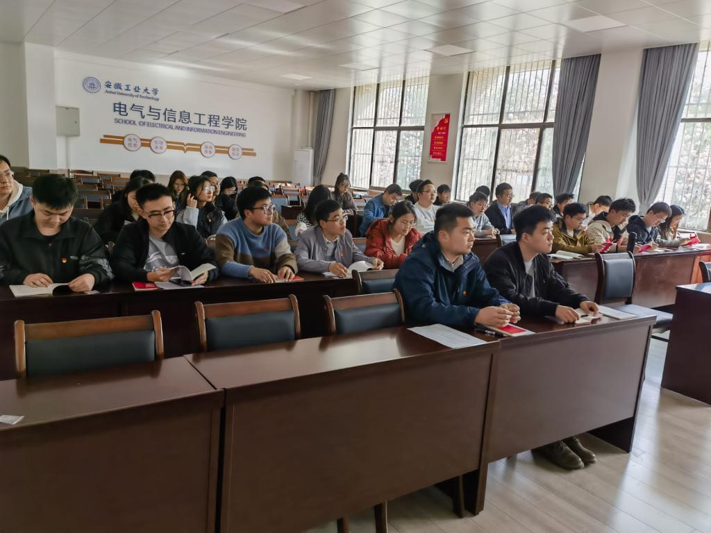 为深入学习贯彻党的二十大精神,切实把思想和行动统一到党的二十大精神上来,3月7日下午,太阳集团tyc539研究生学术型党支部在电气楼113室专题学习了党的二十大报告和党章,支部全体党员、部分积极分子参加本次学习,会议由支部副书记李冉主持。