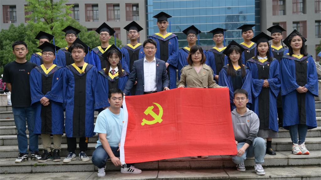 大家佩戴着党员徽章,到曾经学习生活过的教室、实验室、运动场、图书馆、校门等场所拍摄合影,定格毕业瞬间,纪念研究生阶段的青春岁月。在毕业照风格越来越多元的今天,和党徽党旗合影的照片,在这个毕业季格外引人注目,胸前的党徽、手中的党旗为毕业季涂上了一笔靓丽的“红色”。有的党员毕业选择回到家乡,在基层磨练自己;有的选择继续读博深造,在知识海洋中攻坚克难;有的选择在行业中展现专业技能,在经济社会发展中展示创新的力量,用多彩的奋斗书写着属于当代研究生的青春华章。