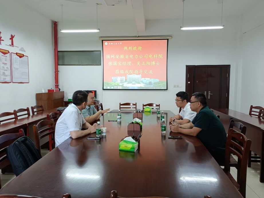 8月9日上午,国网安徽省电力公司电科院张国宝经理一行到公司进行交流。经理沈浩教授代表公司对来访客人表示热烈的欢迎,郑诗程教授参加会议。