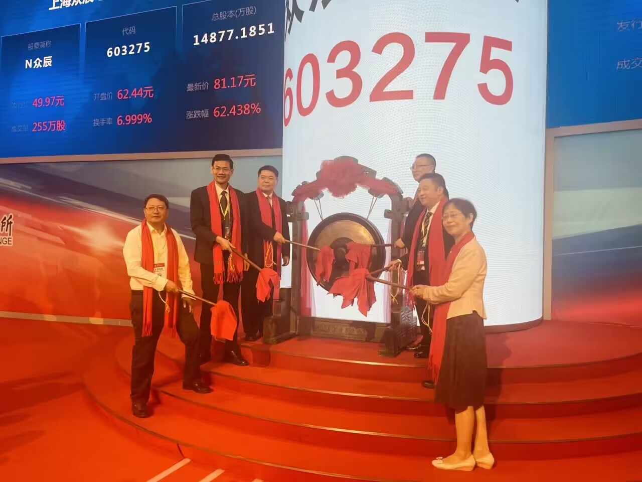2023年8月24日,公司自动化专业95届员工张建军创办的上海众辰电子科技股份有限公司在上交所成功上市,公司党委书记陆林和公司王健教授、李明河教授、商公司章铁生教授见证上市开盘。