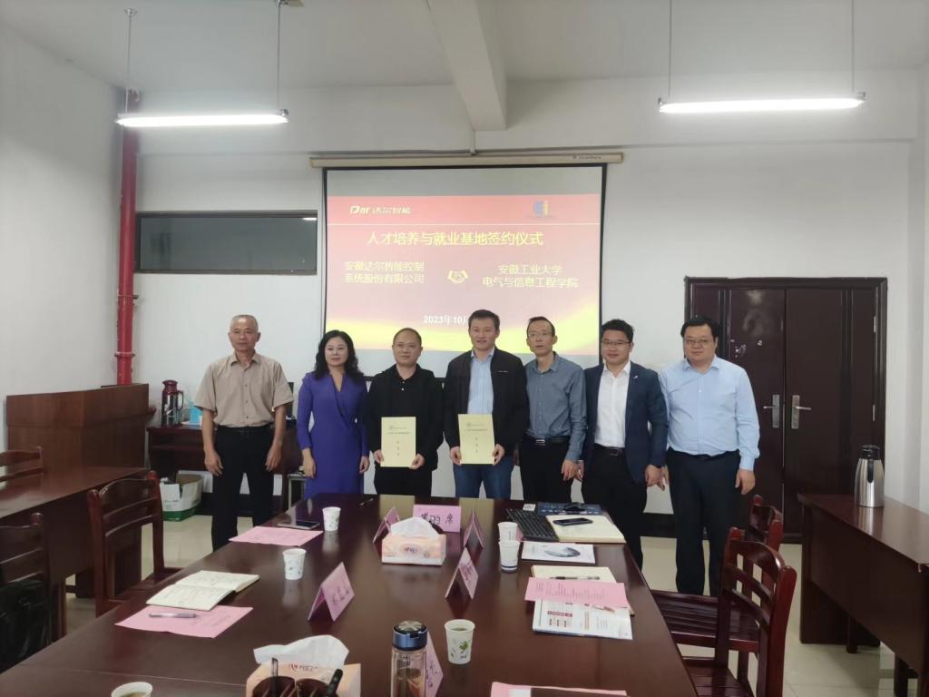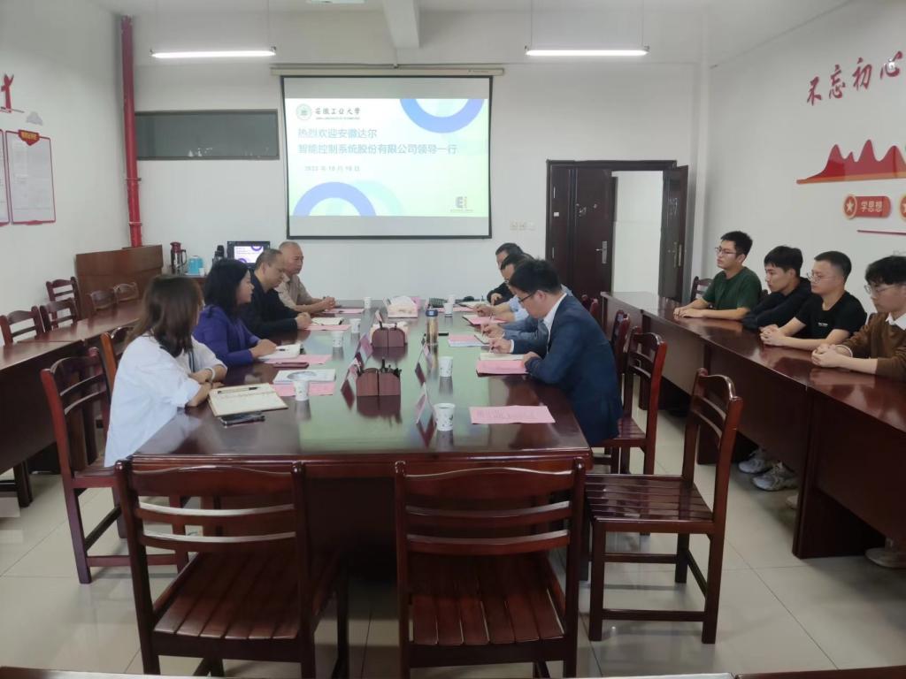 为进一步提升科技创新能力,加强校企产学研合作以及党建工作。10月18日,安徽达尔智能控制系统股份有限公司董事长杨潘一行来公司开展产学研和党建对接活动。公司党委书记丁忠利主持会议,公司研发副总郝能宝、研发部经理齐晶晶、后勤处长兼支部书记胡观海;公司经理沈浩教授、副经理程木田教授、副处级组织员孔洋波、电子信息与通信工程系副主任马小陆教授及部分研究生参加对接活动。