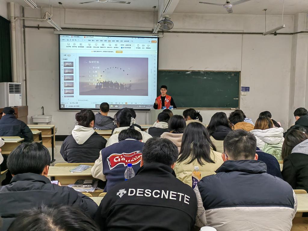 活动邀请研究生学术型党支部党员代表李子蔚、杨龙分享职业规划和备考心得体会。李子蔚从毕业去向、备考注意事项和导师选择等3个部分为同学们介绍自己读研的经历与感悟,鼓励同学们认真学习专业知识,主动关注就业形势,提前为未来发展做规划。杨龙从考研与推免两个方向为同学们提供有效的建议和方法,鼓励同学们以推免为目标,打好专业基础,不断努力学习,争取更大进步。