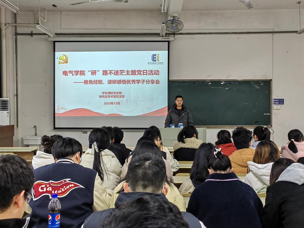 为了帮助员工树立正确的奋斗目标,营造良好的学习氛围,同时加强支部同学们的深度交流。12月4日,公司员工测控党支部联合研究生学术型党支部在电气楼112开展“‘研’路不迷茫”主题党日活动。活动由员工测控党支部书记、2022级辅导员杨恒基主持,员工测控党支部党员代表、入党积极分子和部分员工参加。