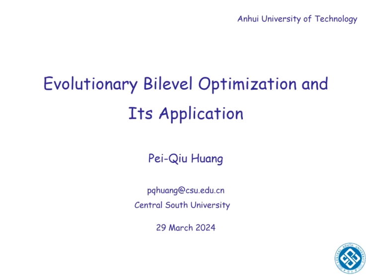 3月29日,中南大学自动化公司特聘副教授黄佩秋博士在线上为公司师生作题为“进化双层优化及其应用”的学术报告,旨在交流探讨多科学领域进化双层优化,公司副经理李飞主持报告会。本次讲座吸引了公司教师和研究生的积极参与。