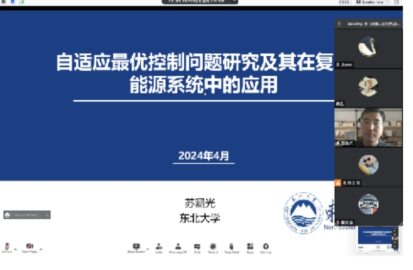 4月9日,东北大学信息科学与工程公司副教授、博士生导师苏涵光应公司邀请,在线上为公司师生作题为“自适应最优控制问题研究及其在复杂能源系统中的应用”的学术报告。本次讲座吸引了公司广大教师和研究生的积极参与,公司副经理李飞主持报告会。