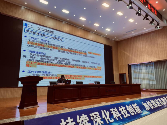 4月11日,公司自动化系主任苏磊作为特邀专家前往安徽天康(集团)股份有限公司参加2024年“百人培育计划”春训班,为集团员工作了题为“科技论文写作方法与技巧——以控制理论为例”的专题报告。