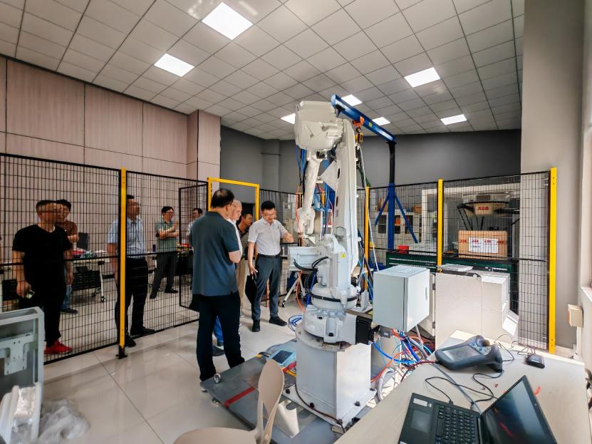 吴江一行首先参观了公司的爱智机器人联合中心,赵卫东详细介绍了中心机器人的技术成果和应用案例,就智能机器人在钢铁制造工艺流程、矿山远程管理技术及其应用与来访专家进行了深入交流。方挺介绍了团队在运用AI视觉技术在各类工业流程中的运用,通过图像处理技术、人工智能算法解决复杂环境下的图像采集、精准识别和精确控制,通过变革传统检测技术的低效率和控制方式,增强各类产线的生产效率和智能化水平;以团队在矿业自动化控制、输电线路故障检测诊断、冷锯定尺切割视觉检测等成功案例,展示了人工智能算法在智慧冶金、智慧生产等方向的应用成果。张辰啸介绍了震动检测在维护大型设备稳定运行等行业成功案例。这些产学研合作典型案例获得了吴江一行专家们的肯定和高度评价。