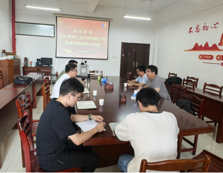 9月1日,山东青博工业科技有限公司董事长田效永、副总经理宋加磊一行来院开展交流合作,经理沈浩教授主持对接活动,方田教授、苏磊副教授、青年博士费习宏、王康等参加。