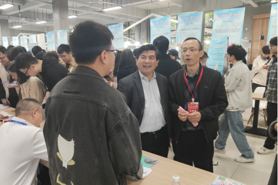 会上,丁忠利一行到各用人单位的招聘摊位上,与招聘领导深入交流,了解参会单位的人才需求和招聘要求,介绍公司的学科优势、专业特色及人才培养情况,积极向用人单位推荐公司毕业生,并与现场求职的毕业生进行交流,了解求职具体意向和就业进程,鼓励他们抓住有利时机早日实现就业。毕业班辅导员通过班级群和年级群等平台,提前发布用人单位信息和岗位需求信息,动员组织毕业生积极参会;公司毕业生结合自身专业、成绩技能和就业期望与用人单位招聘主管进行洽谈交流。