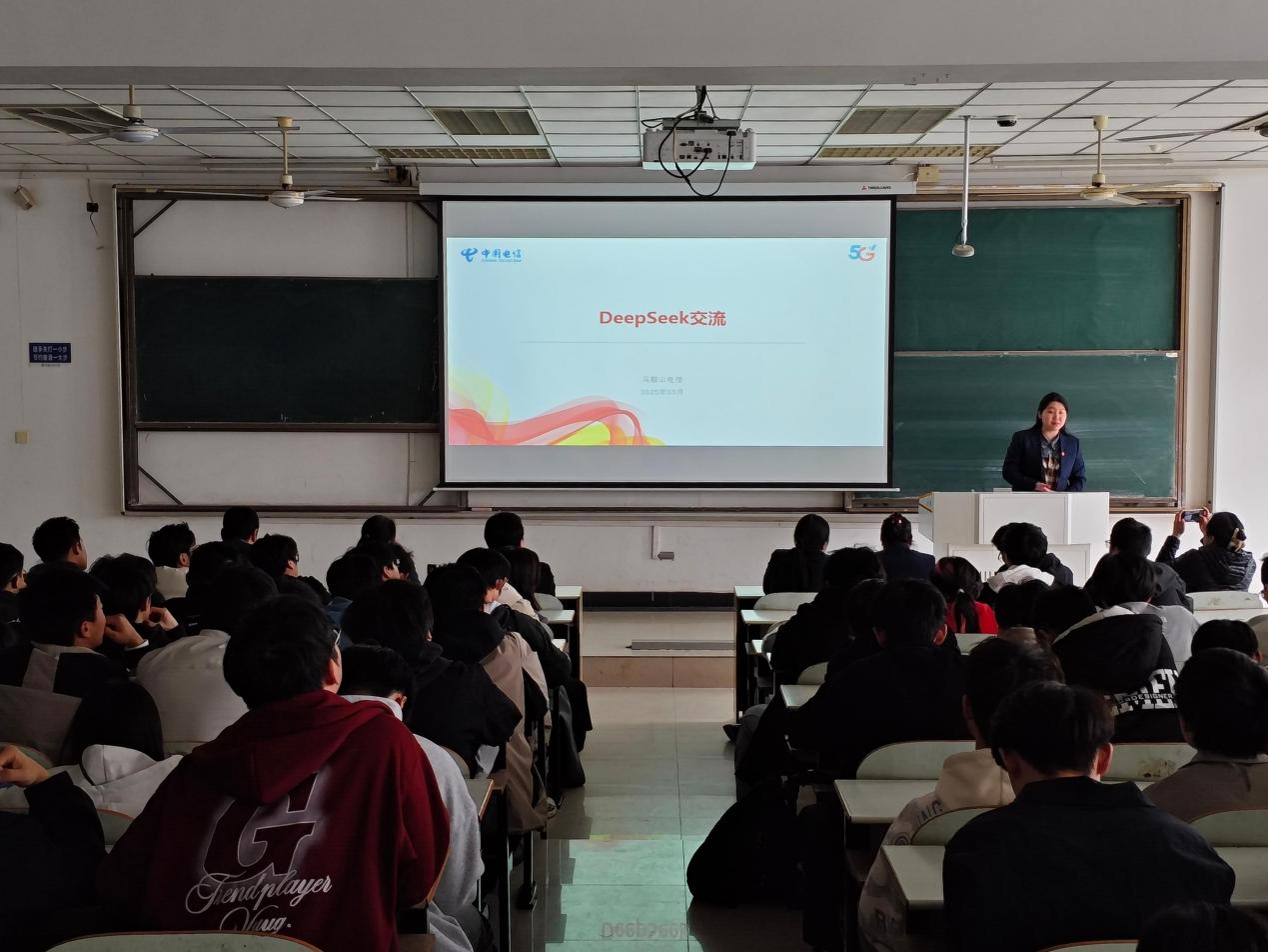 讲座中,谢常春结合国家的发展态势,深入浅出地剖析了通信与电子行业的发展趋势,指出员工在大学期间应掌握的专业知识和实践应用能力,并以电信系统里的职业发展案例,为同学们提供一份清晰的职业规划建议。张艺彤以“DEEPSEEK在通信领域的应用”为主题,详细介绍了DEEPSEEK这一前沿技术的基本原理、性能特点以及在通信领域的应用案例,分析了人工智能技术在应用过程中面临的挑战与解决方案。报告中,两位主讲人还耐心解答同学们关心关注的问题。通过行业专家的报告,同学们充分认识到提前做好学业规划和职业规划的重要性。