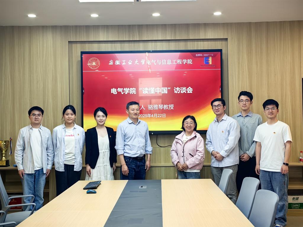为持续推进教育强国建设,积极响应教育部《关于开展2025年“读懂中国”活动的通知》,充分发挥公司关工委“五老”亲历者、见证者和实践者的优势,教育引导青少年员工坚定马克思主义信仰、坚定中国特色社会主义信念,立报国强国的大志向,做挺膺担当的奋斗者。4月22日,员工电气工程党支部在电气楼308室举办了“五老薪火传使命 ‘电’亮青春新征程——‘读懂中国’访谈会”,特邀公司荣休教师、全省优秀教育工作者骆雅琴教授担任主讲,公司党委副书记、纪委书记、副经理孔洋波主持,员工电气工程党支部书记蒋安东及部分党员代表参加学习交流。