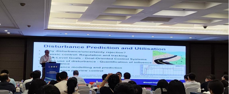 主旨报告环节,皇家墨尔本理工大学余星火教授以《Switching in Discontinuous Control: Myths, Pitfalls, and Opportunities》为题,系统剖析了非连续控制中的核心挑战与潜在机遇;英国拉夫堡大学陈文华教授分享了《Recent Progress and Some Open Problems in Disturbance Observer-Based Control》,探讨扰动观测控制的最新进展;东南大学教授李世华结合机电系统应用场景,展示了非光滑控制方法的创新研究成果。会议还设置多场专题论坛,与会期间公司教师与江苏大学、东南大学等高校专家学者深入交流,探讨“工业互联网实时控制”“大模型与群体智能融合”等前沿议题。李飞介绍了公司在产教融合平台搭建、校企联合培养及智能控制技术研发方面的实践成果,并分享了团队在非连续控制领域的最新研究进展,受到与会专家们高度关注。