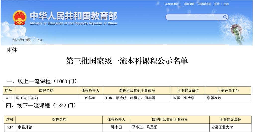 近日,教育部高教司公布了第三批国家级一流本科课程认定名单,公司程木田教授团队的《电路理论》课程和郎佳红副教授团队的《电工电子基础》课程,成功入选第三批国家级一流本科课程,其中《电工电子基础》课程是公司获批的唯一一门线上课程,实现了公司线上一流课程的突破。