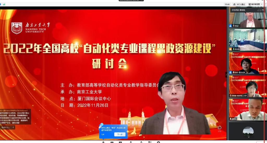 为了推进公司自动化专业的课程思政建设,进一步发挥课程思政示范课程在一线教学中的引领作用。11月26日,2022年全国高校“自动化类专业课程思政资源建设”专题研讨会在厦门举行,公司高度重视,专门组织了自动化及相关专业教师参加线上会议。本次会议由教育部自动化类教指委组织,旨在探讨自动化类专业课程思政示范课程的数字化资源建设内容和标准规范,推动自动化专业人才培养更好地满足社会经济发展的需要。