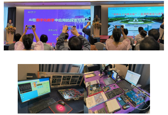 本次研讨会紧扣“AI赋能教学、电子技术课程教学模式改革和探索”的议题,旨在促进电子技术课程教学模式改革与探索、体系与内容建设,推动电子技术课程与现代信息技术、人工智能技术等融合发展。会上,清华大学王红教授、浙江大学林平教授、东南大学堵国樑教授、上海交通大学殳国华教授等专家分别做了精彩的报告。专家们分别从电子技术课程教学改革与交流、一流课程和教材建设以及线上数字资源共享、电子技术课程思政建设探索、电子技术实践教学改革与创新经验交流、生成式人工智能在电子技术课程教学中的探索与实践、教师电子技术课程教学竞赛经验等方面进行了详细的分析和探讨。会议期间,公司参会教师积极向专家们虚心求教,深入探讨了如何将电子技术课程理论教学与实践教学相结合的问题,并参观了电子技术综合实验室和相关实验室设备,充分研究了从理论知识的教学模式到理论和实践相结合的教学模式,再到人工智能融入理论和实践教学的新模式,并详细研讨了新的教学模式带来的优越性以及过程中面临的挑战和策略。