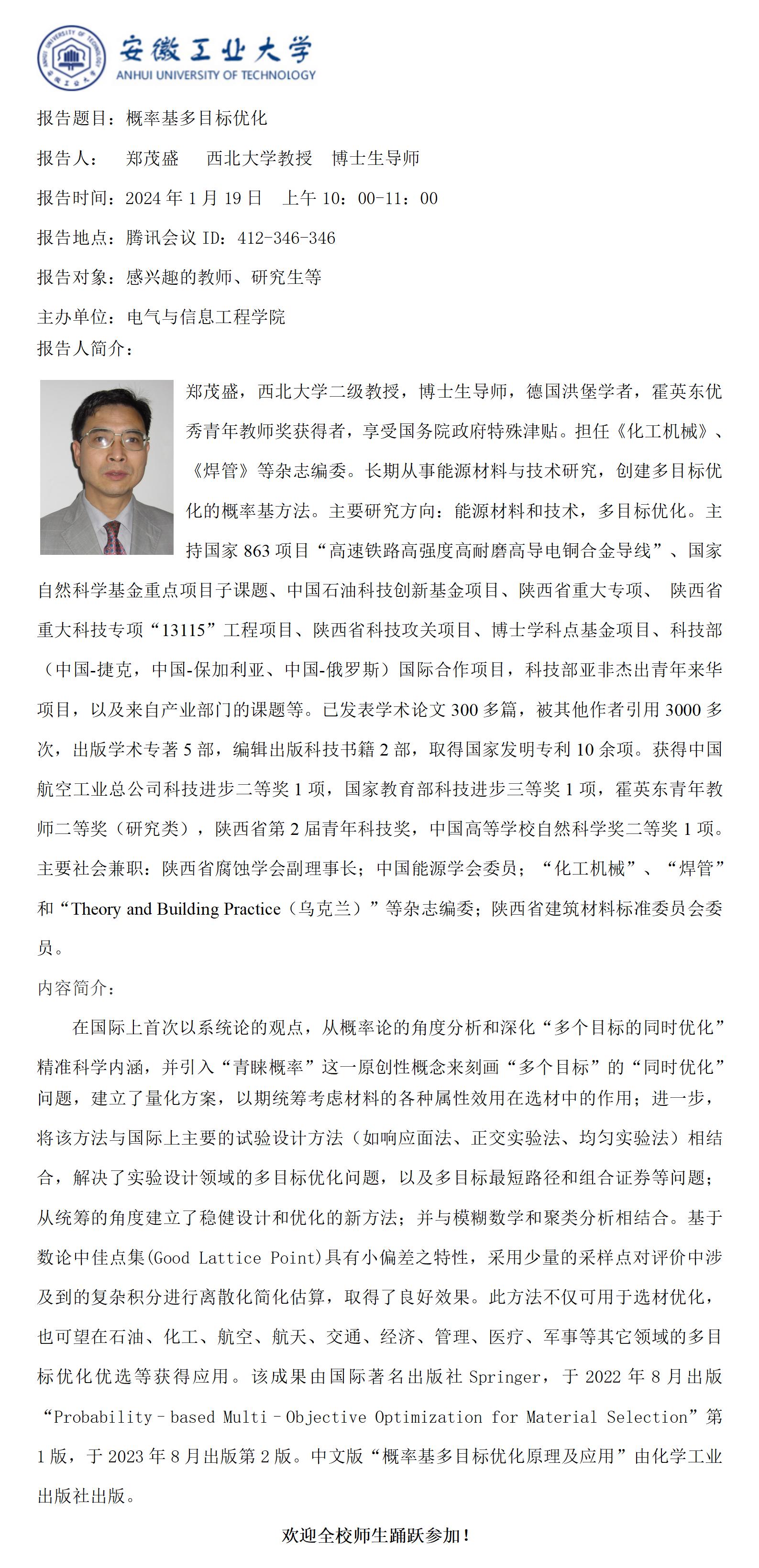 “谦之”学术讲坛之七十三-概率基多目标优化