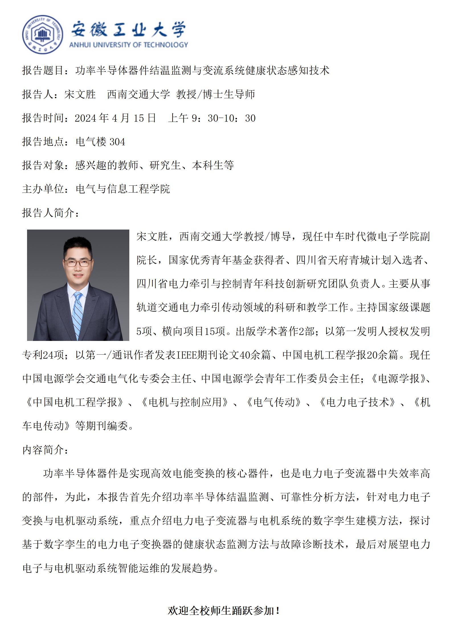 “谦之”学术讲坛之七十九--功率半导体器件结温监测与变流系统健康状态感知技术